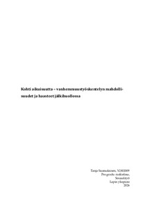(Lapin yliopisto, 2026)Tutkielma tarkasteli vanhemmuustyöskentelyä lastensuojelun jälkihuollossa integroivan kirjallisuuskatsauksen avulla. Teoreettisena lähtökohtana toimivat kriittinen realismi sekä Margaret Archerin realistinen yhteiskuntateoria, ... -