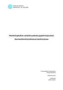 (2026)Tutkielman kohteena on hankintalain 74 §:n 2 momentissa säädetty täsmennyspyyntömahdollisuus ja siihen liittyvä hankintayksikön harkintavalta. Julkisissa hankinnoissa hankintayksiköillä on tietyin rajauksin mahdollisuus ... -