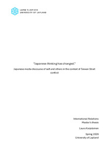 (2026)This master’s thesis examines how Japanese media discourse socially constructs Japan’s national identity in the context of the Taiwan Strait conflict between 2014 and 2022. Using the conceptual lens of identity and role ... -
