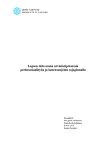 (Lapin yliopisto, 2026)Tässä pro gradu -tutkielmassa tutkittiin lapsen tiedon huomioimista lapsen tilanteen arvioinnissa perhesosiaalityön ja lastensuojelun rajapinnalla. Tutkielma paikantuu kontekstiin, jossa arvioidaan, kumpi edellä mainituista ... -