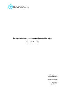 (Lapin yliopisto, 2026)Tutkielma tarkastelee EU:n tuoteturvallisuussääntelyn ennakollisuutta kuluttajantuotteiden osalta. Tarkastelu painottuu erityisesti yleiseen tuoteturvallisuusasetukseen ((EU) 2023/988, GPSR). Tutkielman tavoitteena on ... -