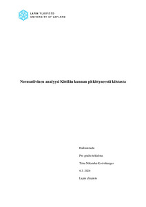 (Lapin yliopisto, 2026)Pro gradu-tutkielmassa tarkastellaan hallintotieteen näkökulmasta Kittilän kuntahallintoon sijoittuvaa pitkittynyttä hallinnollista sekä oikeudellista kiistaa, niin kutsuttua Eilavaara Casea (myöh. Kittilä Case). Tapauksen ... -