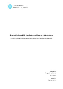 Sosiaalityöntekijä yhteiskunnallisena vaikuttajana : sosiaalityöntekijän yhteiskunnallisen vaikuttamisen tavat, esteet ja edistävät tekijät