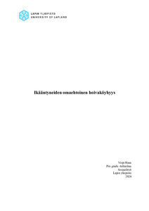 (Lapin yliopisto, 2026)Iäkkäiden henkilöiden ja esimerkiksi muistisairaiden määrän kasvaessa on ikääntyneiden omaehtoinen hoivaköyhyys aiheena hyvin ajankohtainen, mutta vähän tutkittu aihe. Tässä pro gradu tutkielmassa etsitään vastausta ... -