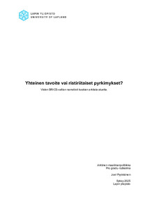 Yhteinen tavoite vai ristiriitaiset pyrkimykset?: Viiden BRICS-valtion narratiivit koskien arktista aluetta.