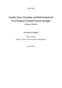 (Lapin yliopisto, 2025)This study examines how the Finnish national tourism strategy addresses security issues andcompares it with the French, German, and Spanish tourism strategies. Security and peace are fundamental prerequisites for tourism ...