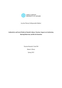 (Lapin yliopisto, 2025)This study investigates if tourists' perceptions of the authenticity of Finnish cuisine influence their feelings, conversations, and revisit intentions. To determine both visitor satisfaction and social media sharing have ... -