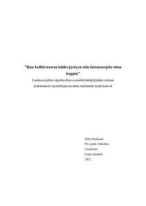 (Lapin yliopisto, 2025)Tässä tutkimuksessa tarkastellaan hatkaamista kokeneiden nuorten identiteettien rakentumista. Tutkimuksen teoreettisena viitekehyksenä on diskursiivisen identiteetin käsite, jolla tarkoitetaan identiteetin rakentumista ... -