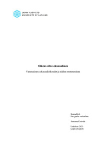 (Lapin yliopisto, 2025)Tutkielma käsitteli rakenteellisesta viitekehyksestä lastensuojelun avo- ja sijaishuollossa työskentelevien sosiaalityöntekijöiden kokemuksia siitä, miten työssä koettu turvallisuus vaikuttaa työhyvinvointiin. Aiheen ...Rajattu käyttöoikeus. Käytettävissä vain Lapin yliopiston kirjaston asiakaskoneilla. -
