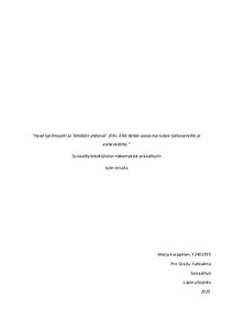 (Lapin yliopisto, 2025)Sosiaalityötä luonnehtivat eettiset valinnat ja usein ristiriitaisetkin odotukset, mutta työn luonne ei rajaudu pelkästään kuormittavuuteen tai eettisiin paineisiin. Ammattia ohjaavat ihmisoikeudet ja sosiaalityön eettiset ... -