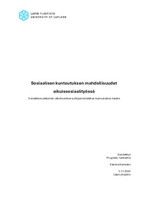 (Lapin yliopisto, 2025)Sosiaalinen kuntoutus on ajankohtainen ja merkityksellinen tutkimuskohde, sillä se hakee edelleen paikkaansa aikuissosiaalityön kentällä ja sen vaikuttavuudesta on saatavilla vain rajallisesti tutkimustietoa (Karjalainen ... -