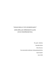 (Lapin yliopisto, 2020)Tässä pro gradu –tutkielmassa tarkastellaan, millaisena joustavassa perusopetuksessa (JOPO) opiskelevan oppilaan oppimismotivaatio ilmenee säveltämisprojektin aikana. Säveltäminen toteutettiin pienryhmissä tablet- ja muita ... -