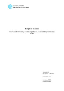 (Lapin yliopisto, 2025)Tämän pro gradu- tutkielman tarkoitus oli selvittää sisarusten hyvinvointia ja resilienssiä perheessä, jossa on kehitysvammainen sisarus. Jos perheessä on jollain tavalla vammainen tai erityistä tukea tarvitseva lapsi, ... -