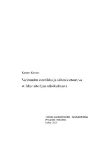 Tutkielma haastaa sairaus- ja hoitokeskeiset lähestymistavat vanhuuden kohtaamisessa ja korostaa vanhan ihmisen ainutlaatuisen identiteetin tunnistamista ja arvostamista. Näkökulmana on taiteen asiantuntijuus kulttuurisessa vanhustyössä. Tutkielma esittää, että myös vanhalla ihmisellä on oikeus omaan estetiikkaansa – tapaan aistia, jäsentää kokemuksia ja olla merkityksellisessä suhteessa ympäristöönsä.