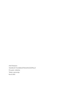Tässä pro gradu -tutkielmassa tarkastellaan valokuvana toteutettuja tilausmuotokuvia osana tilausmuotokuvan kenttää. Tutkimuksessa selvitetään, kuinka valokuvamuotokuvana toteutetut tilausmuotokuvat asemoituvat osaksi tilausmuotokuvan kenttää ja millaisia diskursseja niihin liittyvässä uutisoinnissa esiintyy. Tutkimus paikantuu taiteensosiologian kentälle, ja sen teoreettisena viitekehyksenä toimii Pierre Bourdieun kenttäteoria ja käsite symbolisesta pääomasta. Tutkimuksen aineoistoksi on valitkoitunut kahdeksan valtakunnallista uutisartikkelia, jotka käsittelevät valokuvina toteutettuja tilausmuotokuvia. Aineisto analysoitiin diskurssianalyysia hyödyntäen. Analyysin perusteella aineistosta tunnistettiin neljä toistuvaa puhetapaa: perinteisen muotokuvan, taiteen, kalliin valokuvan ja modernin muotokuvan diskurssit Nämä diskurssit muodostavat toisiinsa limittyvän kentän, jossa valokuvana toteutetut tilausmuotokuvat näyttäytyvät osin ristiriitaisten odotusten ja arvojen keskellä. Tutkimus osoittaa, että valokuva muotokuvatekniikkana haastaa vakiintuneita käsityksiä virallisista muotokuvista, mutta se ei ole yksiselitteisesti hyväksytty osa korkeakulttuurista taidekenttää. Valokuvana toteutetut muotokuvat rakentavat uutta tilaa visuaalisen vallankäytön, yhteisöidentiteettien ja taidepuheen risteyskohdassa. Tutkimus avaa uusia näkökulmia valokuvan rooliin taiteellisena, yhteiskunnallisena ja institutionaalisena ilmaisumuotona, samalla heijastaen valokuvan vaikeaa taidesuhdetta.